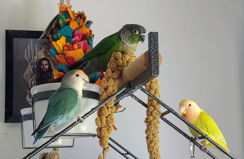 -Avoir plusieurs perchoirs et surfaces de différentes longueurs, diamètres et textures. Chacun bien espacé pour permettre à l’inséparable de pouvoir bien ouvrir les ailes sans se sentir encombré.