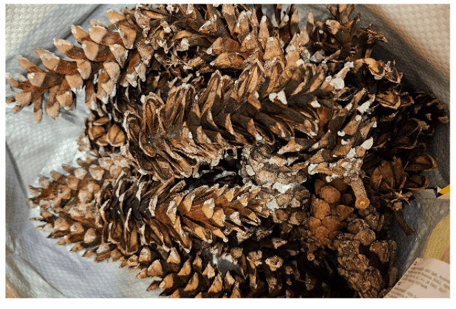 Vous pouvez ramasser des cocottes de pin ou d’épinettes dans les endroits