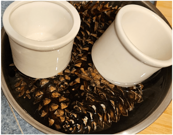 - Mettre les cocottes dans un grand bol et le remplir jusqu’à au-dessus de celle-ci